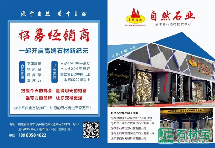 自然石业全球奢石批发中心,招募经销商,无需加盟费,一手货源,专业背景墙供应厂家。欢迎选购