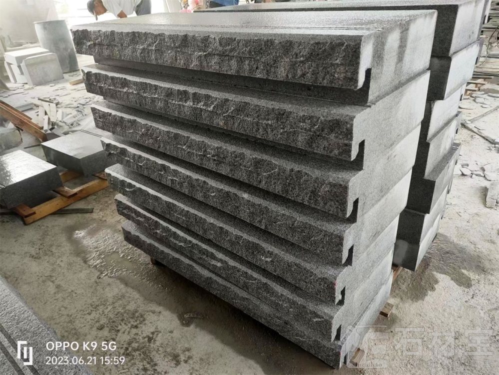 633芝麻灰,654芝麻黑,光面,火烧面,荔枝面,台阶石、工程板、水沟盖板、公园石凳等异型加工