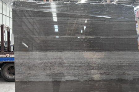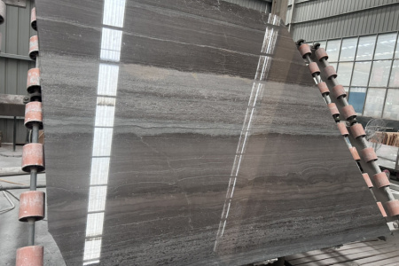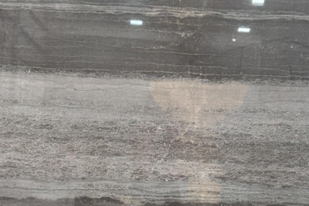 是一种大理石材质,其色泽稳定、花色均匀,柔和的浅灰上面分布着或深或浅、或疏或密的线性纹路,宛如木材的天然肌理,呈现出低调奢华的质感