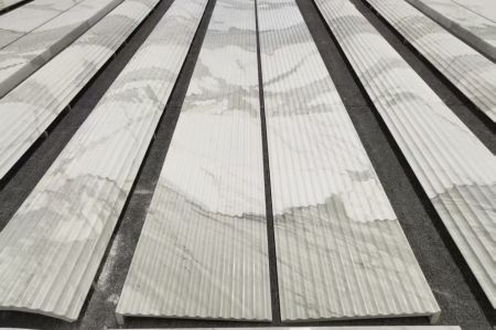 #易达鱼肚白🇮🇹 每日分享 编号:YD97 鱼肚白 尺寸:3130✖️1580✖️18,剩下4件196平 经典的正矿鱼肚白,奶油底,非常适合做台面,岛台,柱子等,丰富的纹理让场景变得无比大气,同款曾经落地超五星级高级酒店大堂立柱等。