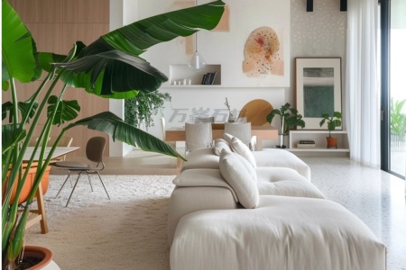 ✨ 快来!你要的「Ins风氛围感」 当微水泥的冷遇上彩色碎钻般的星点肌理 脚踩的不止是地面,是会呼吸的侘寂美学👇 - 像把美术馆搬进家:白调基底混着细碎云母/矿石,自然光下一整个「柔焦滤镜」,随手拍都是家居博主级大片 - 无缝通铺的松弛感:从客厅漫到阳台,连踢脚线都隐形,空间直接“大了10㎡” - 踩上去是云朵脚感:哑光磨面自带呼吸感,光脚踩不凉,连家里的毛孩子们都爱蜷在上面打盹