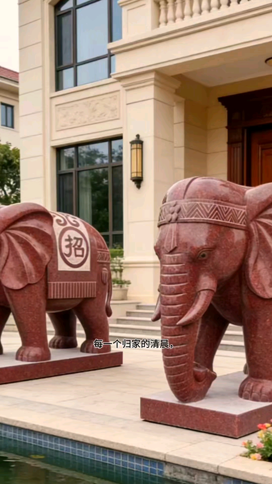 别墅摆件,花园设计,私人会所订制,石雕印度红大象