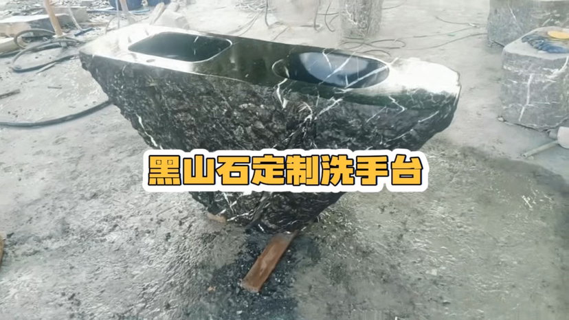 黑山石异形定制水钵,以黑山石为原料。黑山石属于天然石材,外观呈深灰色至黑色 ,表面常带白色纹理,质地坚硬且质感古朴自然。打破常规形状,依需求定制为不规则几何形等独特样式,如图中异形轮廓,极具艺术感与设计感,能为空间增添独特魅力。